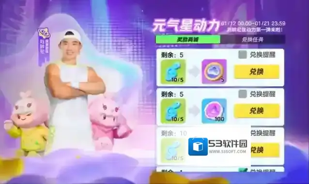 活动期间内,完成指定任务获取动感音符,使用音符可兑换动作“刘畊宏元气操”、“八段锦壹式”、“八段锦贰式”,还能兑换云朵币和星宝印章,星宝们快来和刘畊宏一起动起来吧!