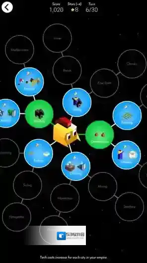 6、点击下方的tech tree可以打开科技树,能消耗星星来解锁不同的科技。