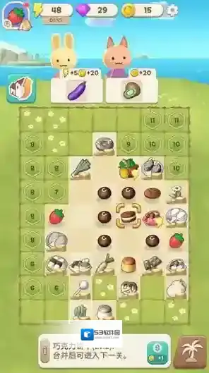 2、点击菜篮子来获得合并素材,将相同的水果或者蔬菜合并来获得更高等级的物品。