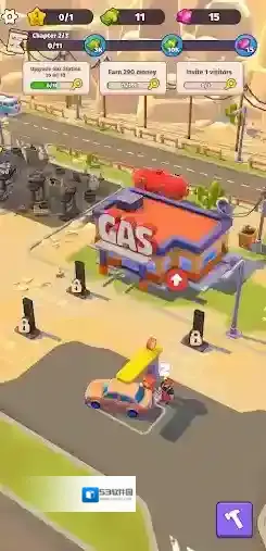 2、开启了加油站后,通过为来往的汽车加油来赚取金钱。