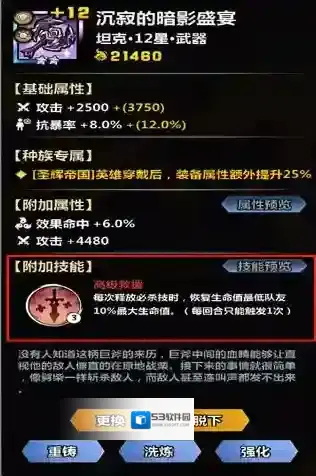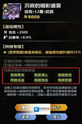 2、装备技能在装备强化至+12后会在以下装备技能中随机获得1个