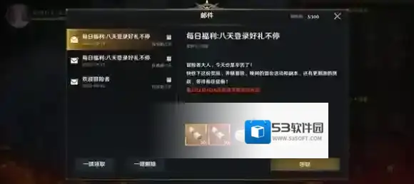 查收邮件获取丰厚游戏礼包 ,可获得资源为前期的战力打下基础