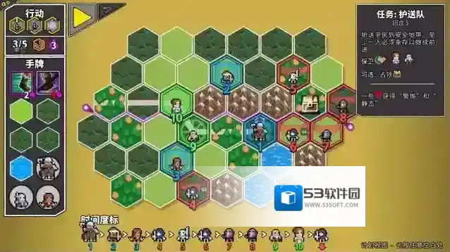 4、正式开始战斗后左侧是玩家可以使用的手牌,你的目标会在右上方显示,每回合可以使用两张卡牌。