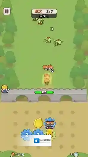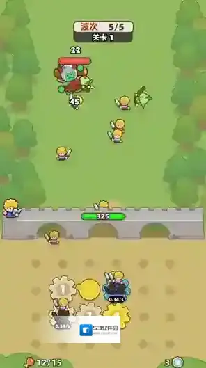 3、点击战斗后齿轮会转动来召唤小兵,小兵会自动消灭出现的怪物敌人。