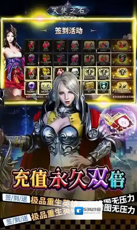 3、充值永久双倍,连续登陆签到再送顶级重生英雄,碾压推图无压力
