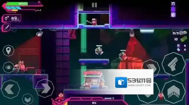 2、正式开始后左边控制角色的移动和互动,右边是攻击、跳跃、冲刺和射击按键。