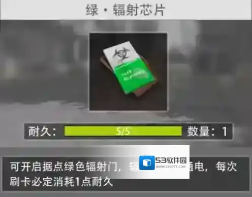 6、绿-辐射芯片:刷新地点木屋、熊洞、丧尸、超市、加油站、各大物资点楼梯房楼顶等。