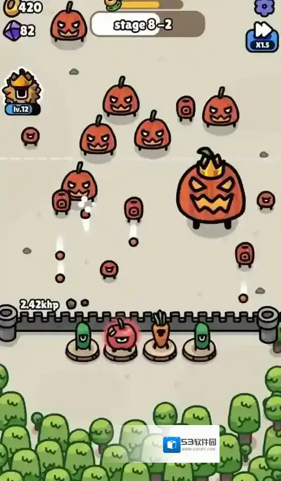 游戏的玩法很简单,上阵水果英雄守护你的城堡就可以了,这些英雄不需要玩家来手动操作,它们会自动攻击出现在范围内的敌人。游戏中的水果英雄很多,消耗金币就可以召唤,用获得的钻石解锁更多的位置来上阵更多的英雄,通过一个又一个的关卡来体验新的乐趣吧。
