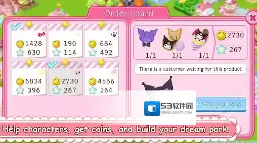 2、在这里你将会见到众多三丽鸥的人气角色,和他们一起建设好这座童话般的主题游乐园,享受建造的快乐过程。