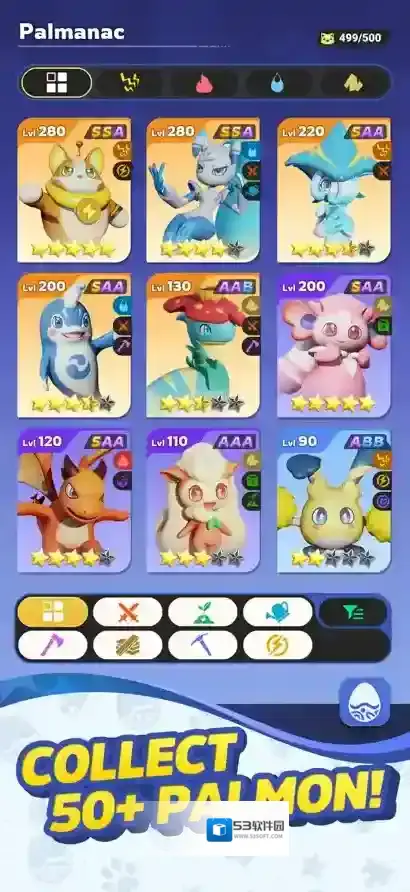 5、点击左下角的帕萌按钮可以对帕尔蒙进行升级,升级后的帕尔蒙战斗力会更强。