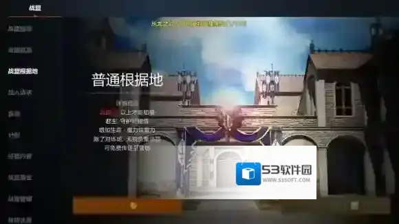 战盟等级达到3级后,战盟的君主以及守护者有资格购买战盟根据地!在战盟根据地中,成员回复生命以及魔力的速度更快。