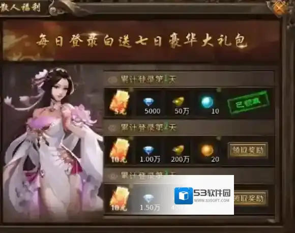 6、开启散人福利,每天登录白送七日豪华大礼包等