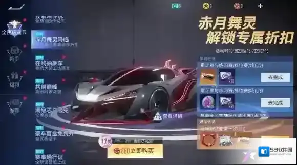 限时活动-豪车租赁行:活动期间,车手们通过完成任务或抽奖即可获得专属租车券,每张租车券都会解锁雪佛兰 Corvette ZR1 一天的试驾时间,集齐7张专属租车券,即可兑换永久雪佛兰 Corvette ZR1 !全球限量超跑,人人都能试驾,快来体验这辆竞速神车的无限魅力吧!此外抽奖还有几率获得赛车零件、传说涂装、进阶改装件等稀有道具,快来试试吧!