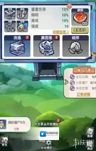 5、玩家自身有各种捕猎工具,分别对应捕猎的各种抽奖属性,如笼子对应捕捉大僵尸概率等。