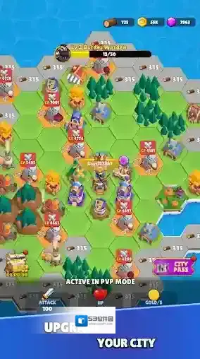 2、在战场中随机翻转土地,召唤出各种传奇英雄进行战斗,庞大兵营同时出兵,用潮水般的大军进攻敌人领地,将它们全部占领!