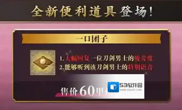 本次活动结束后,仍可在万屋购买一口团子,依旧可以使用道具一口团子恢复刀剑男士疲劳值,并听到特殊语音。