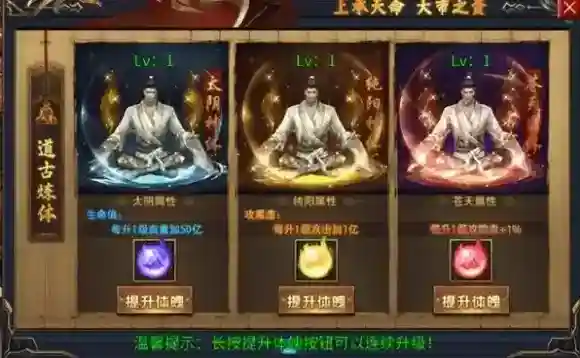 提升太阴、纯阳、苍天等属性体魄,能分别增加生命、攻击、防御等属性。