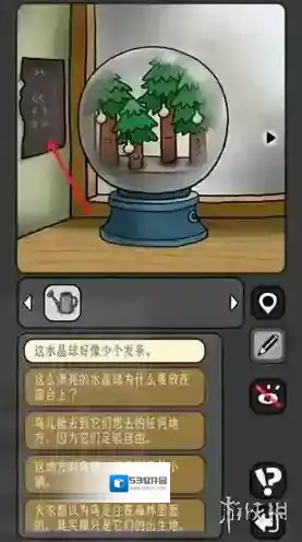 12、拾取地上的钳子,点击窗台上的水晶球,装上发条,获得线索。
