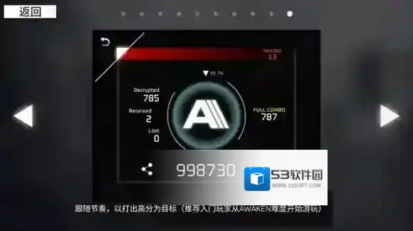 跟随节奏,以打出高分为目标(推荐入门玩家从AWAKEN难度开始游玩)