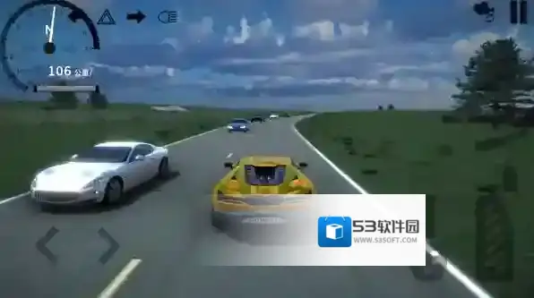 2、进入地图后左边控制车辆的转向,右边是油门和刹车,左上角是当前车辆速度。