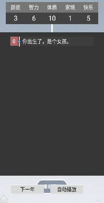 4、可以自动播放生成的人生故事,选择不同每次的人生不同,如果不满意可以重启。