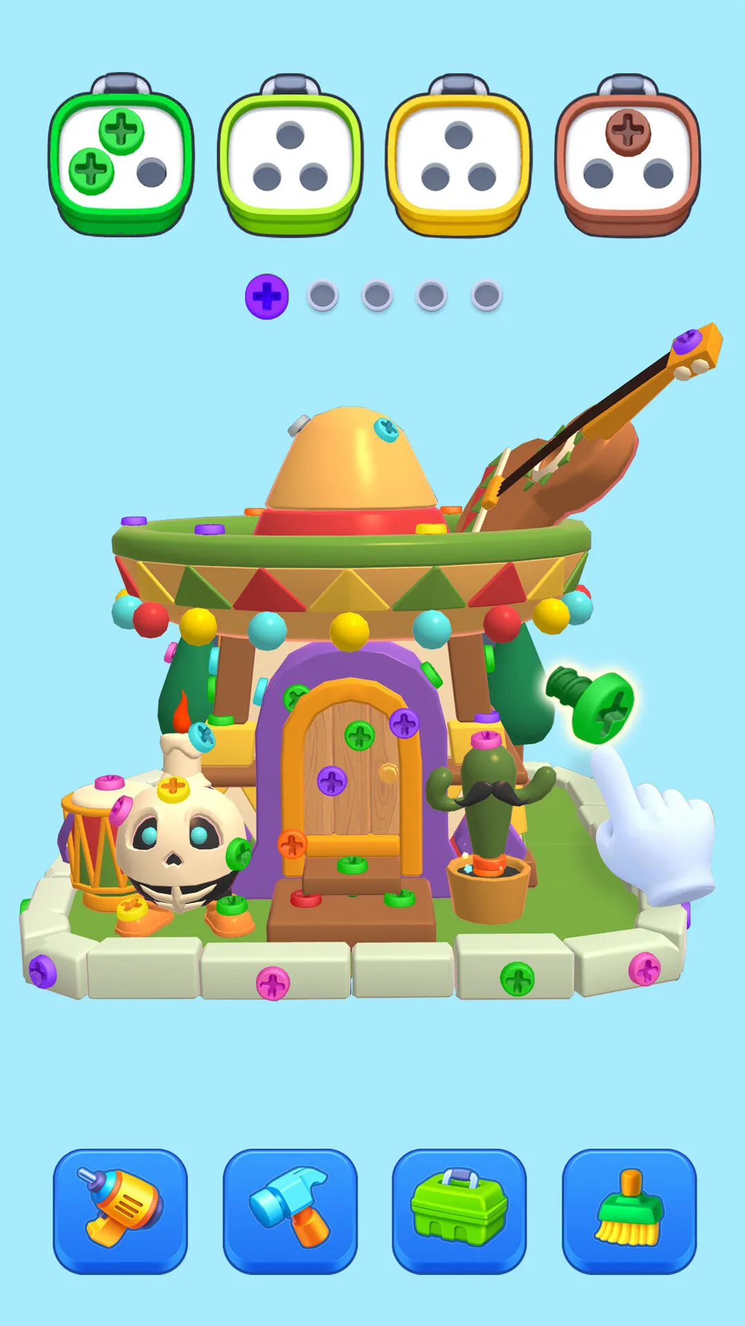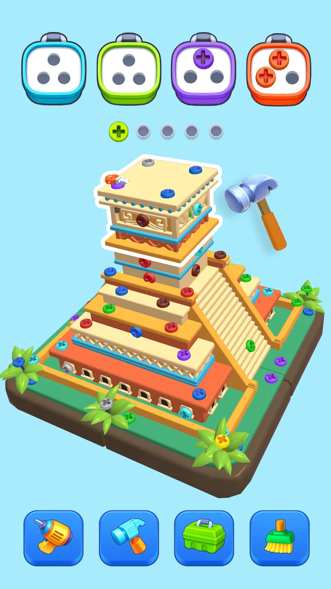 拧紧所有螺丝即可通过关卡获取奖励
