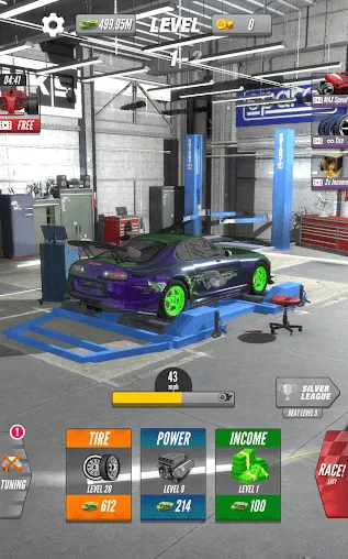 从测功机上的车库开始你的旅程。你需要通过发动引擎获得收益,像真实改装厂一样,先攒钱再升级。