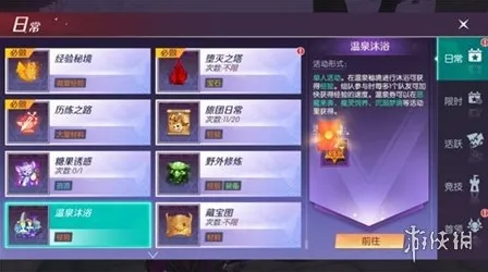 在温泉秘境中沐浴可获得经验,组队参加时,每增加一名队友,经验增长速度会加快,温泉券可以通过恶魔来袭、魔灵饲养、沉溺秘境等活动获得。