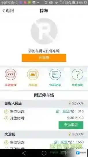 5、浏览附近停车场,智能展示出停车场信息和资源;