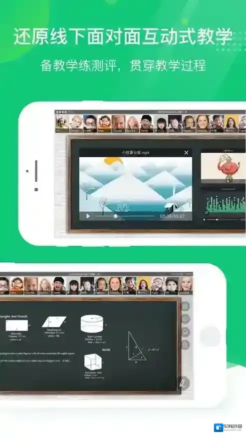 1、老师可以直播讲课的场景,学生可以展示所见所闻,分享在教室内;