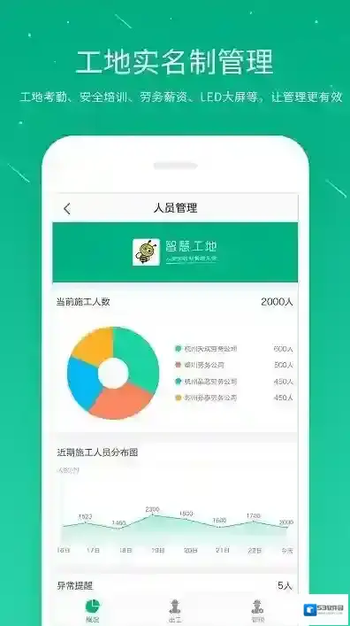 工地考勤:严密的工地考勤系统,数据实时上传至云服务器,提供精确的工人出工信息,减少相关劳资纠纷的发生。