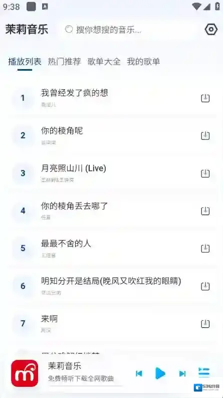 2、支持下载功能,用户可以下载喜欢的歌曲进行离线播放。