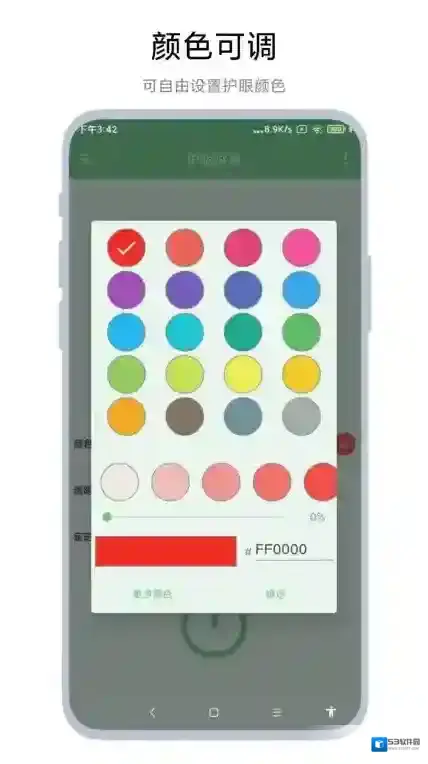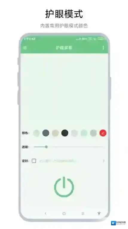 这是一个可以设置屏幕保护色的APP。可以快速设置屏幕保护色,从而达到保护眼睛和减缓疲劳的效果。软件支持用户设置不同的保护色,也可以自定义保护色,自定义透明读,也可以实现在不同的时间段显示不同的保护色。