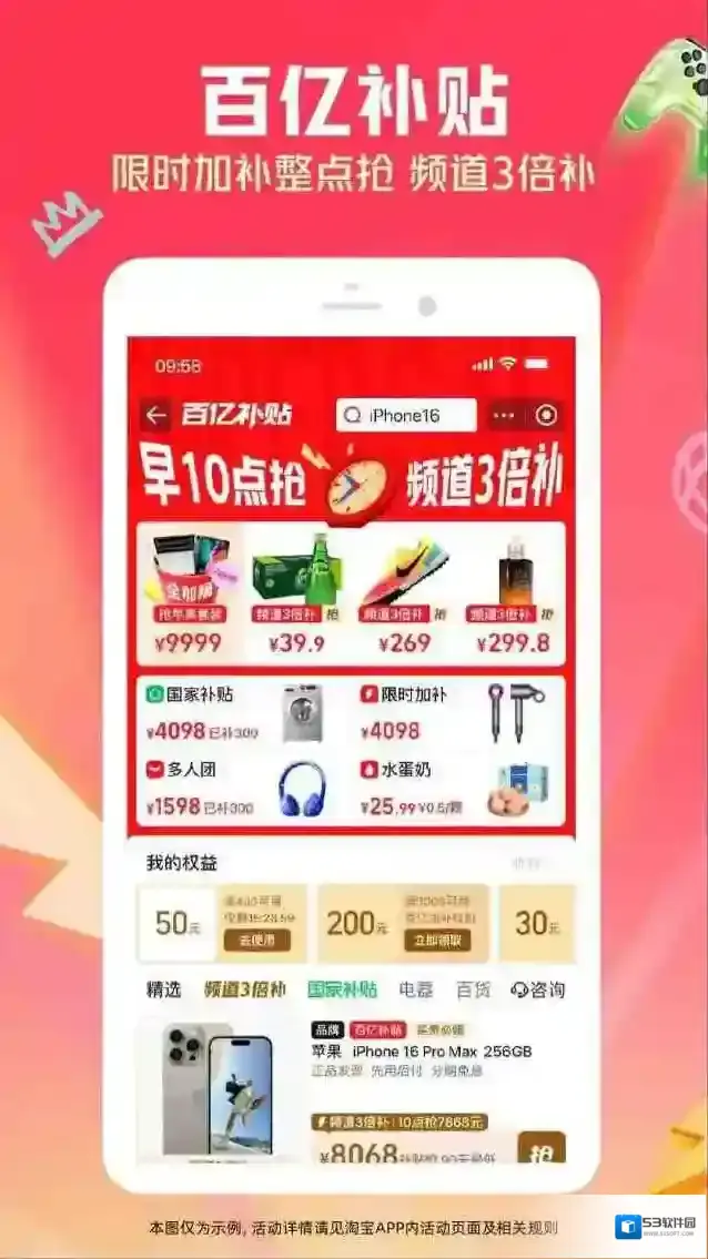 淘宝百亿补贴 限时加补整点抢 频道3倍补
