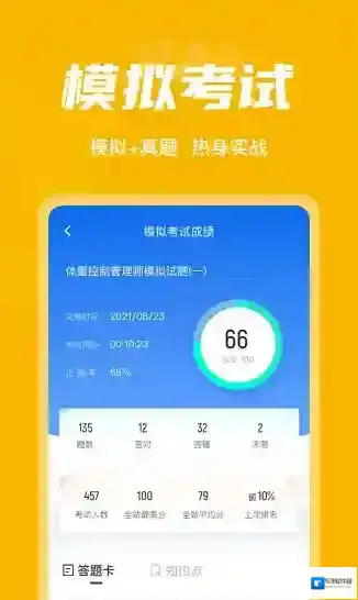 体重控制管理师APP新增模拟考试功能,体重控制管理师可按照自我练习的考点选择相对应的模拟试卷,也可选择搭配好的模拟整卷考试。