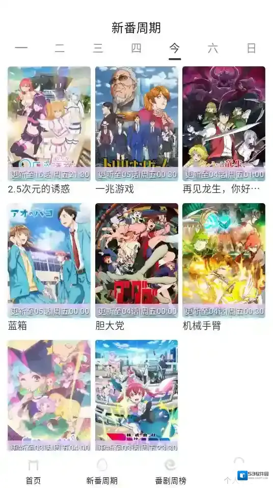 2、“新番周期”列表主要是每天新出的动漫资源,可以实时关注新番动态。