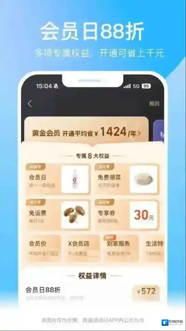 1、是当下很多用户都在使用的线上购物app,可以买菜、买生活用品,手机下单很快就可以送货上门。