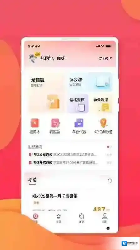 七天学堂查成绩app,一站式学习平台,覆盖小初高中不同学段不同学科的知识,教师在线授课和解答疑问,提供详细的知识点,让学生除了书本知识的学习以外,还可以在课外学习更多的知识,根据重难点可以有针对性的做练习题,并且支持查询各科分数,软件提供海量题目资源,让用户可以随时随地进行练习和复习。