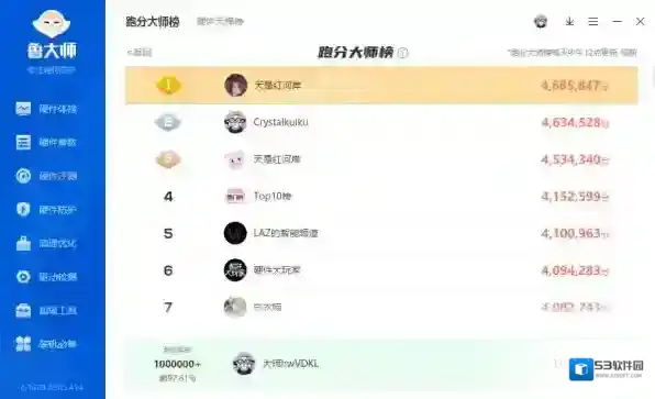 然后在弹出的跑分大师榜界面的地步,我们就可以看到自己当前电脑跑分的排名情况了。