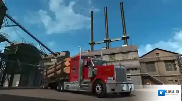 3、抵达工厂,沿路线精准停车,完成木材交付,借工厂场景熟悉卡车装卸、运输全流程。