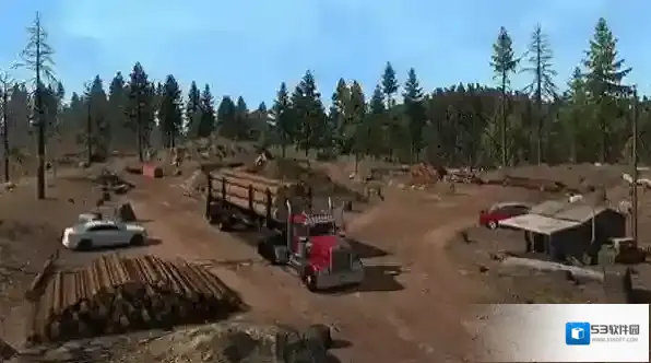 1、驾驶红色运木卡车,在林场土路行驶,避障碍、其他车辆,稳运木材,适应越野路况。