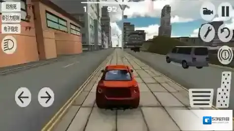 2、行驶城市道路,用左右按键控方向,留意时速、距离,避障碍,体验赛车操控与速度。
