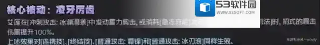 最后是艾莲在数值方面的提升,此前艾莲的核心被动只能为蓄力剪击和冰附魔普攻施加100%暴伤加成,而在增强过后,艾莲的核心被动还能对连携技、终结技以及普攻的[霜锋]和[冰刃浪]生效,大幅提高了核心被动的覆盖率,强化明显。