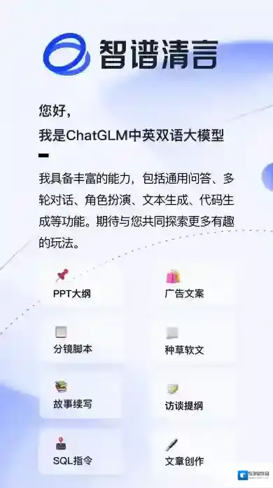 智谱清言是一个能帮你进行语音对话智能生成话语的软件,基于中英双语大模型chatglm开发,帮你“聪明一点”,每天少工作一小时。具备当前很多的丰富能力。