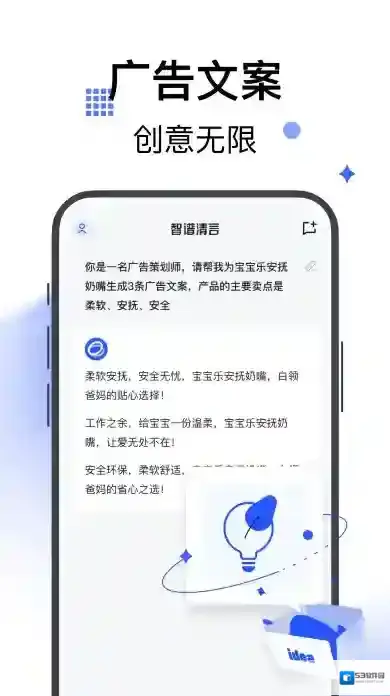 更多创意:写作文、标题生成、广告文案、ppt大纲、开题报告、分镜脚本。