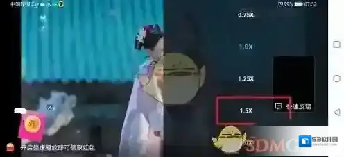 4、然后选择倍速播放视频的速度,这里选择1.5倍倍速播放,