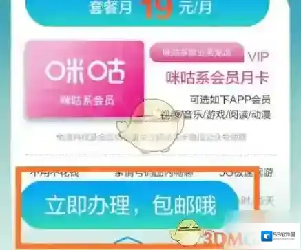 4、点击移动花卡,办理之后,咪咕视频可以免流。