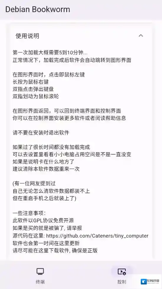 软件只支持arm64设备,默认用户tiny密码tiny,vnc端口5904密码12345678,novnc端口36082,pulseaudio端口4718,Termux X11占用端口7897;本软件不会和termux冲突。