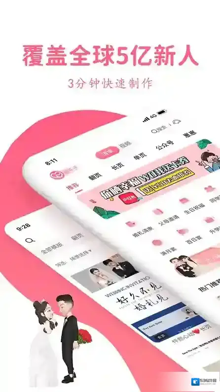 3.精美模板:宝宝相册、周岁请柬、婚礼邀约、生日贺卡等,专业设计师配置动态效果