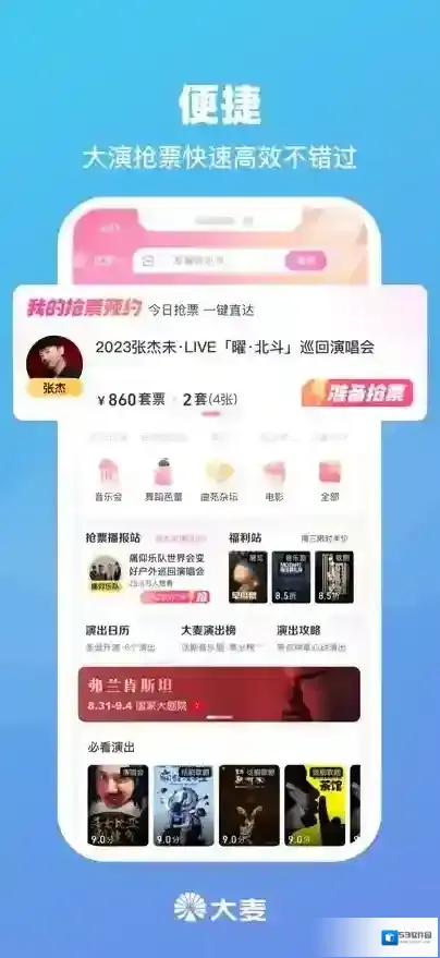2、大麦手机客户端可以为广大网友们在线预订各种演唱会、音乐会、话剧、体育比赛门票,既方便又实惠还效率高;